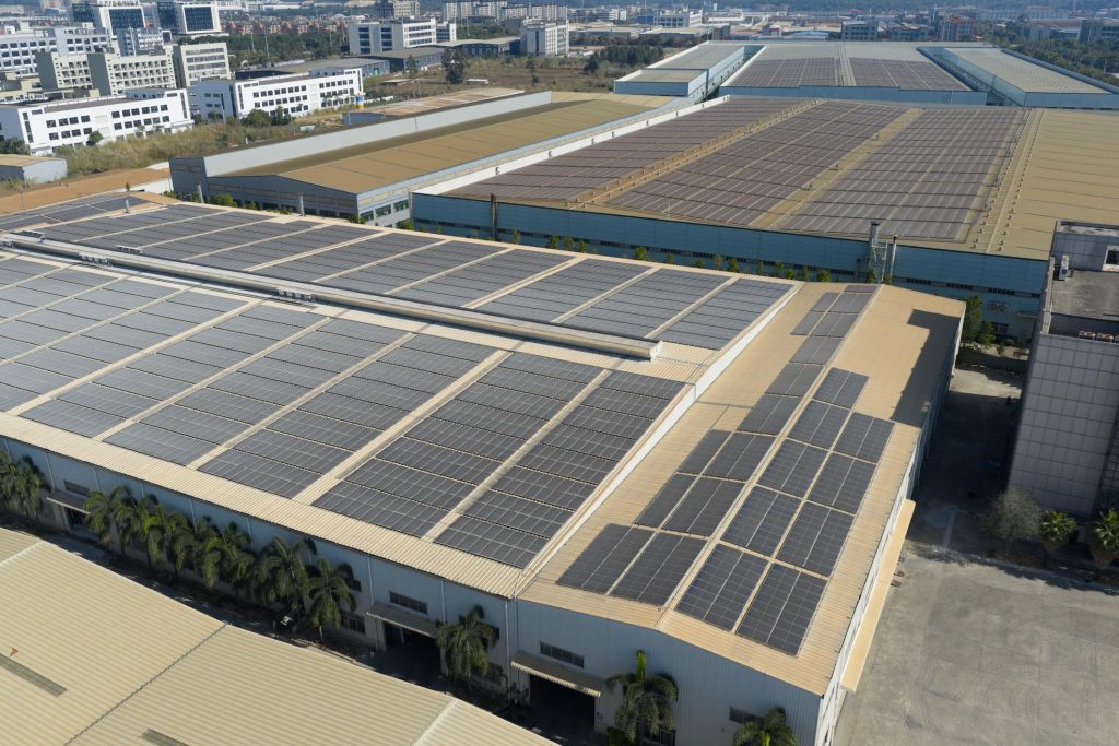 Painéis solares de alta eficiência responsáveis por captar a radiação solar e transformá-la em energia elétrica.