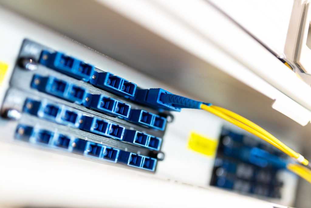 Infraestrutura em cabeamento e fibra óptica com alta performance e integração de dados e segurança.